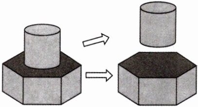 3 如图,将螺栓分成圆柱和六棱柱两部分,这两部分各由几个面围成?它们是平面还是曲面?六棱柱有几条棱?