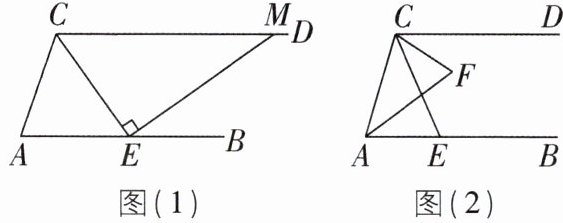 (1)如图(1),若 $CE$ 平分 $\angle ACD$,过点 $E$ 作 $EM \perp CE$ 交 $CD$ 于点 $M$,试说明 $\angle A = 2\angle CME$;