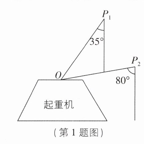 1 [2025 山东临沂期末,中]如图是一台起重机的工作简图,前后两次吊杆位置 $OP_1$, $OP_2$ 与线绳(线绳垂直于地面)的夹角分别是 $35^{\circ}$ 和 $80^{\circ}$,则吊杆前后两次的夹角 $\angle P_1OP_2$ 的度数为 ( )