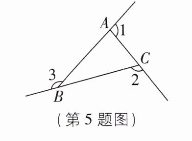 5 如图,∠1,∠2,∠3是△ABC的3个外角,则∠1 + ∠2 + ∠3 =