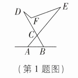 1 [2024山东烟台期中,中]如图是可调躺椅示意图,AE与BD的交点为C,∠CAB = 50°,∠CBA = 60°,∠CEF = 30°,∠D的大小可以调整。为了舒适,需使∠EFD = 130°,且∠CAB,∠CBA,∠E的度数保持不变,则∠D应调整为(