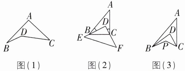 (1)∠BDC=∠BAC+∠B+∠C.理由:如图,连接AD并延长至点F.根据外角的性质,可得∠BDF=∠BAD+∠B,∠CDF=∠C+∠CAD.又