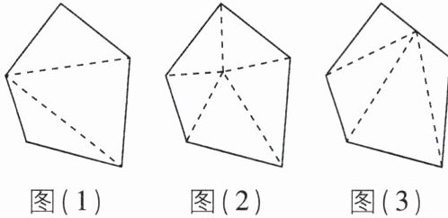 (1)得,若是n(n为大于3的整数)边形,三种方法分割所得三角形的个数依次为n-2,n,n-1.