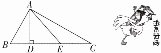 如图,在△ABC中,AD是高,AE是中线,AD= 4,$S_{△ABC}= 12,$则BE的长为(