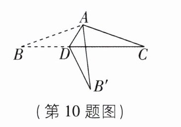 10[2023辽宁辽阳中考]如图,在三角形纸片ABC中,AB= AC,∠B= 20°,点D是边BC上的动点,将三角形纸片沿AD对折,使点B落在点B'处,当B'D⊥BC时,∠BAD的度数为______.