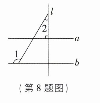 8[2024江苏连云港中考]如图,直线a//b,直线l⊥a,∠1= 120°,则∠2= ______°.