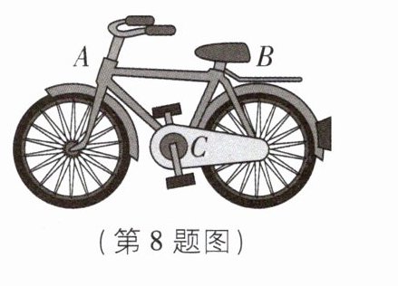 8 [2025吉林松原期中]如图,自行车框架中的$AB$,$AC$,$BC$构成一个几何图形,其可使得自行车结构更加稳固,这里所运用的几何原理是