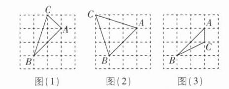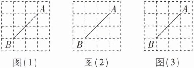15[2025吉林长春期末]图(1)、图(2)、图(3)均是4×4的正方形网格,每个小正方形的边长均为1,小正方形的顶点称为格点,线段AB的端点均在格点上,只用无刻度的直尺,在给定的网格中,按下列要求以AB为边画△ABC.