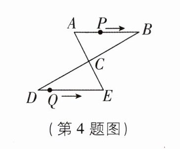 ∴∠A = ∠E,ED = AB = 4 cm。在△ACP 和△ECQ 中,∠A = ∠E,AC = CE,∠ACP = ∠ECQ,