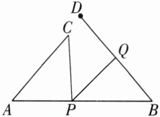 8 [2025浙江台州期中]如图,已知$AB= 10$,$AC= 6$,$BD= 8$,其中$\angle CAB= \angle DBA= \alpha$,点$P$以每秒2个单位长度的速度沿着$C\to A\to B$路径运动,同时,点$Q以每秒x个单位长度的速度沿着D\to B\to A$路径运动,一个点到达终点后另一个点立即停止运动,它们的运动时间为$t$秒.