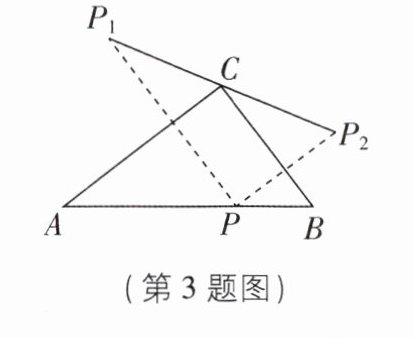 3 [中] 如图,在△ABC 中,∠ACB = 90°,BC = 6,AC = 8,AB = 10,动点 P 在边 AB 上运动 (不与端点重合),点 P 关于直线 AC,BC 对称的点分别为$ P_1,P_2,$则在点 P 的运动过程中,线段$ P_1P_2 $的长的最小值是______.