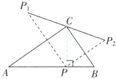 ∵ 点 P 关于直线 AC,BC 对称的点分别为$P_{1}$,$P_{2}$,$\therefore P_{1}C=PC=P_{2}C$,$∠P_{1}CA=∠PCA$,$∠P_{2}CB=∠PCB$,$\therefore ∠P_{1}CP_{2}=2∠ACB=180^{\circ }$,$\therefore P_{1}$,C,$P_{2}$三点共线,$\therefore P_{1}P_{2}=2CP$. 当$CP⊥AB$时,CP 的长最小,此时线段$P_{1}P_{2}$的长最小.