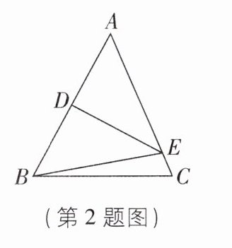 2 如图,在△ABC 中,AB 的垂直平分线 DE 与边 AB,AC 分别交于点 D,E. 已知△ABC 与△BCE 的周长分别为 22 cm 和 14 cm,则 BD 的长为 (