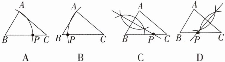 1 [2025 福建厦门期中]△ABC 中,AB<AC<BC,如果要用尺规作图的方法在 BC 上确定一点 P,使 PA+PB= BC,那么符合要求的作图痕迹是(