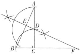 请在 AC 边上截取线段 CD,使得 CD= BC,过点 D 作直线 AB 的垂线,垂足为点 E,交 BC 的延长线于点 F。(尺规作图,保留作图痕迹,不写作法)