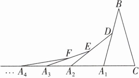 ∴∠DA₂A₁=$\frac{1}{2}$∠BA₁C=$\frac{1}{2}$×75°=37.5°.同理可得,∠EA₃A₂=$(\frac{75}{4})°$,∠FA₄A₃=$(\frac{75}{8})°$,