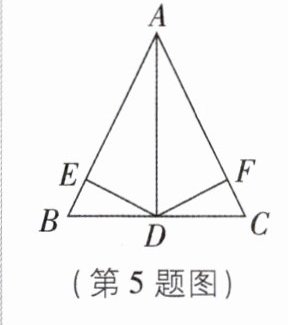 5如图,在$\triangle ABC$中,$AB= AC,AD⊥BC$于点D,$DE⊥AB$于点E,$DF⊥AC$于点F,下列结论:①$∠BAD= ∠CAD$;②AD上任意一点到AB,AC的距离相等;③$BD= CD$;④若点P在直线AD上,则$PB= PC$.其中正确的是(