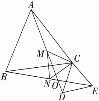 3 [较难]已知:如图,△ABC,△CDE都是等边三角形,AD,BE相交于点O,点M,N分别是线段AD,BE的中点.