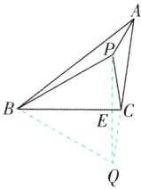 142 [解析]延长AC到Q,使AQ=AB,连接PQ,BQ,PQ交BC于点E,如图.