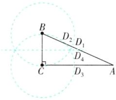 C [解析]如图,①以BC为腰时,以B为圆心、BC长为半径画圆,与AB有一个交点D₁;以C为圆心、BC长为半径画圆,与AB有一个交点,与AC有一个交点,分别为D₂,D₃。②以BC为底时,作BC的垂直平分线,与AB有一个交点D₄。综上可知,点D的位置有4个,故选C。