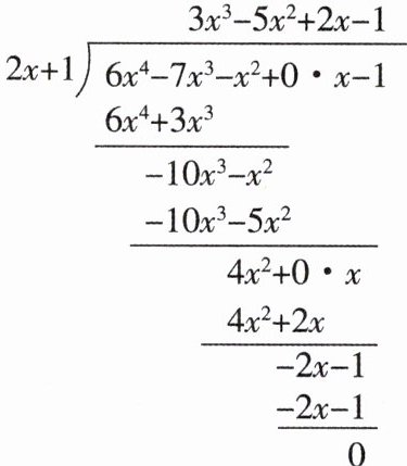 例如:计算(6x^{4}-7x^{3}-x^{2}-1)÷(2x+1),可用竖式计算如下: