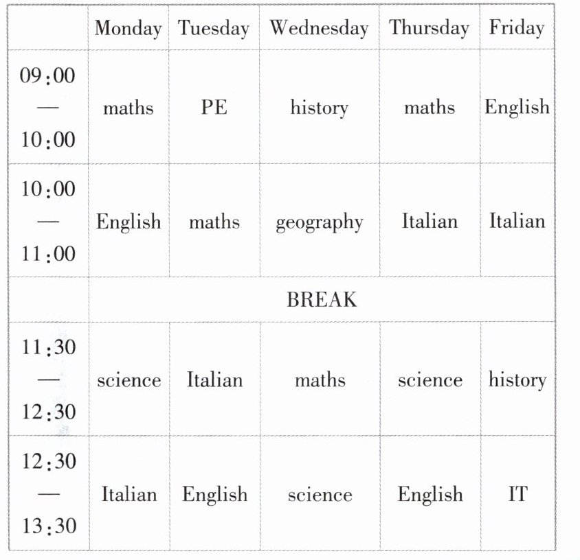 ( )18. How many English classes does Paula have every week?