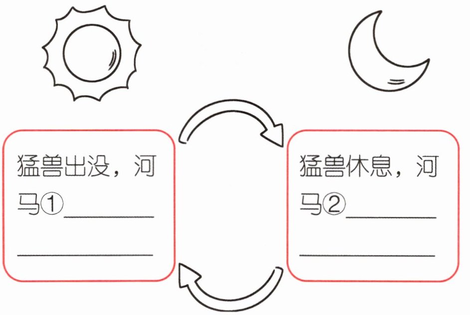 4 获取信息 阅读第3自然段,了解河马躲避敌害的方法,并结合文章内容,把框图补充完整。(2分)