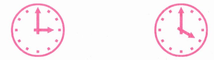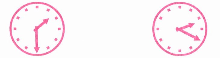 one o'clock, two o'clock, half past one (one thirty), twenty past two (two twenty), three o'clock, four o'clock, a quarter past three (three fifteen), half past six (six thirty)