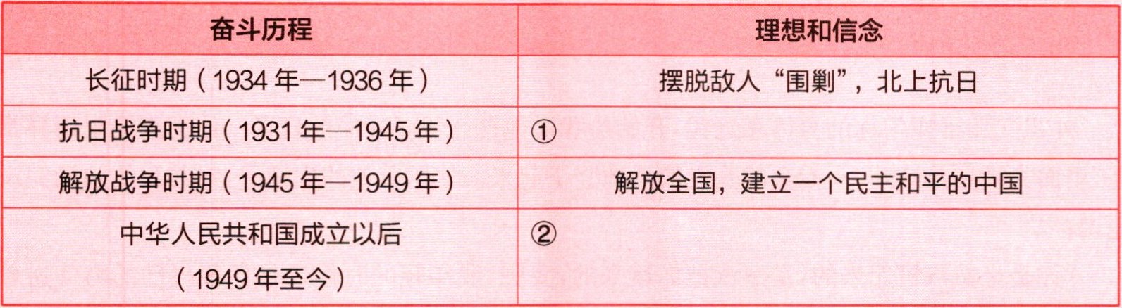 1 奋斗的历程离不开崇高的理想和坚定的信念。结合第 43~46 篇文章,梳理中国共产党和中国人民的奋斗历程,思考他们各阶段的理想和信念是什么。