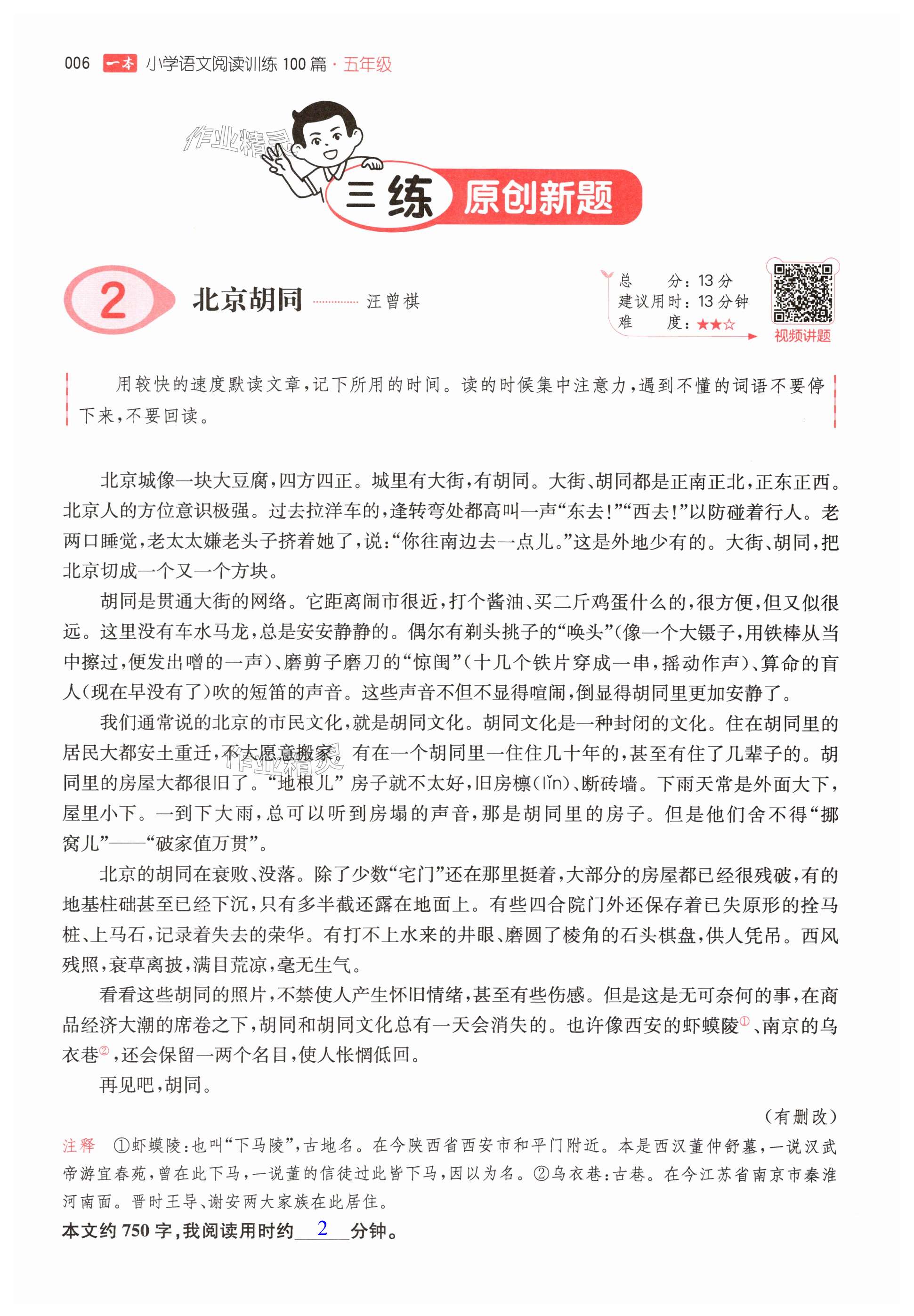 注:目前有些书本章节名称可能整理的还不是很完善,但都是按照顺序排列的,请同学们按照顺序仔细查找。练习册 2025年一本五年级小学语文阅读训练100篇 答案主要是用来给同学们做完题方便对答案用的,请勿直接抄袭。