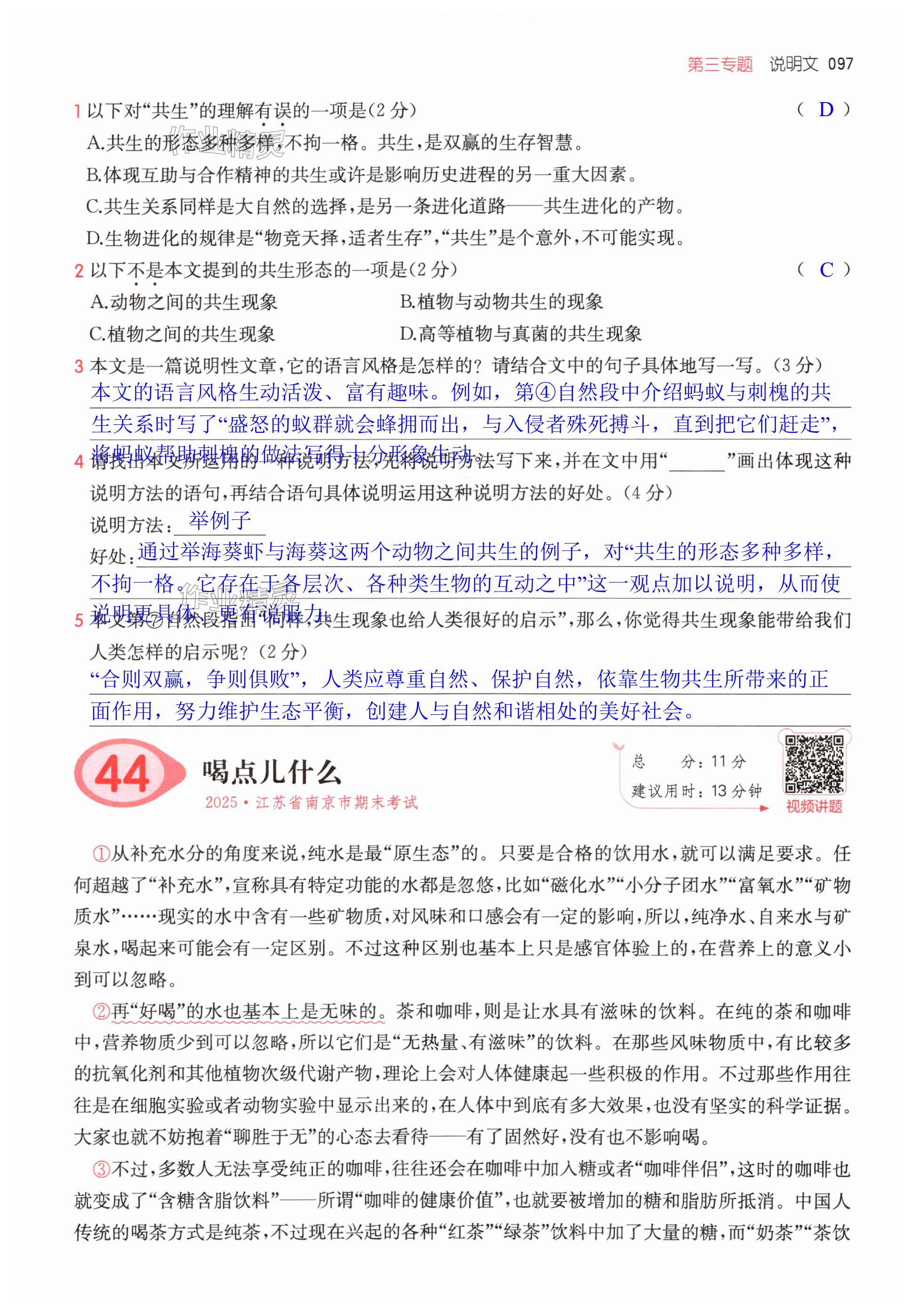 注:目前有些书本章节名称可能整理的还不是很完善,但都是按照顺序排列的,请同学们按照顺序仔细查找。练习册 2025年一本五年级小学语文阅读训练100篇 答案主要是用来给同学们做完题方便对答案用的,请勿直接抄袭。