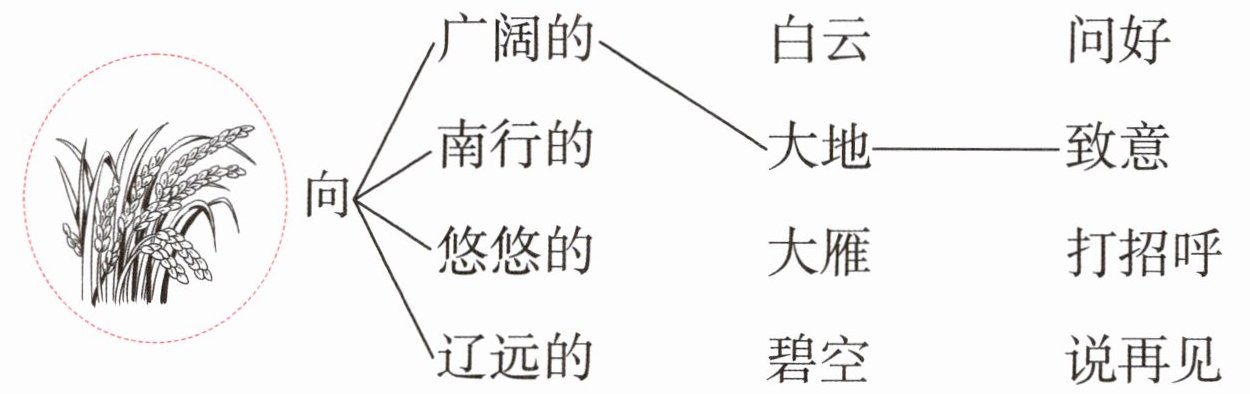 获取信息 稻穗都在向谁鞠躬弯腰?请照样子连一连。(3分)