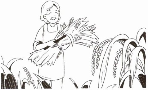 割稻穗的、打谷的、捆稻草的、装稻谷的、捉稻