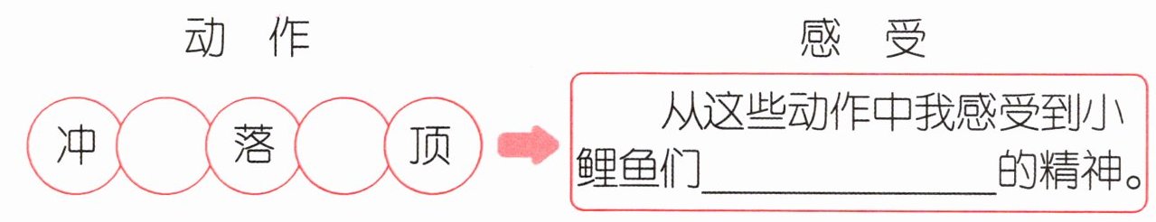 先摘录小鲤鱼们跳龙门时的动作,再谈谈自己的感受。