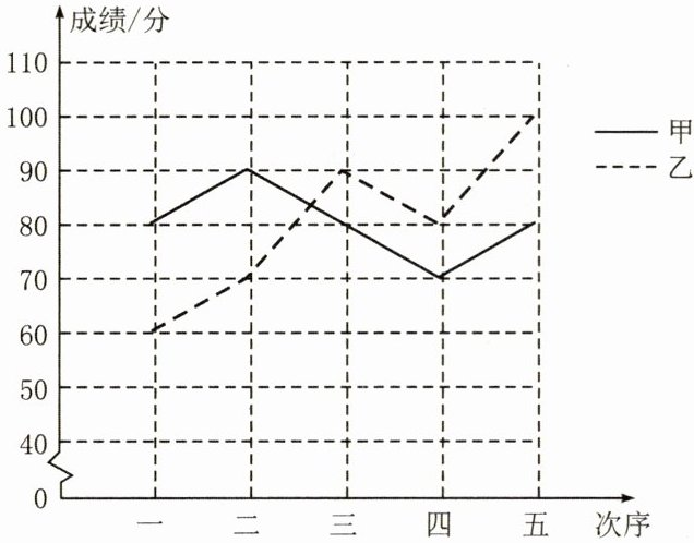 (3)甲同学的成绩在 70 分到 90 分间上下波动,而乙的成绩从 60 分到 100 分,呈现上升趋势,越来越好,进步明显.