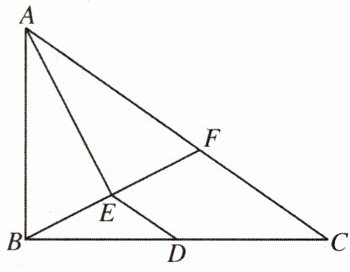 21. 如右下图所示,在$\triangle ABC$中,D 是 BC 边的中点,AE 平分$∠BAC$,连接 BE 交 AC 于点 F,$∠ABF=∠AFB$,连接 DE.已知$AB=9,BC=11,DE=2$.