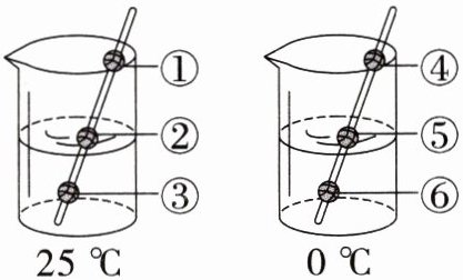 1. 如图所示,将6粒蚕豆种子分别放到两个盛水烧杯的不同位置,一个烧杯置于25℃的环境中,另一个烧杯置于0℃的环境中。下列分析正确的是(