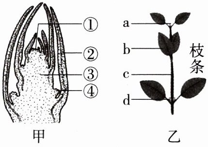 (2)乙图中,桃花结构的主要部分是[