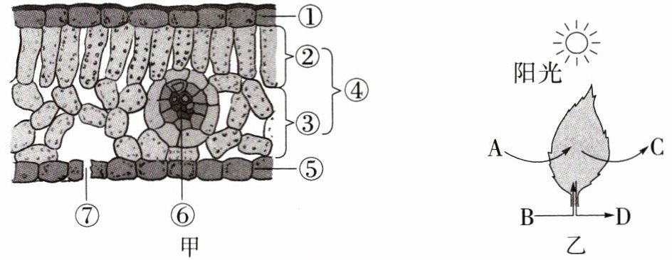 8. 甲图为叶片的结构示意图,乙图为植物光合作用的过程示意图,请据图回答问题。