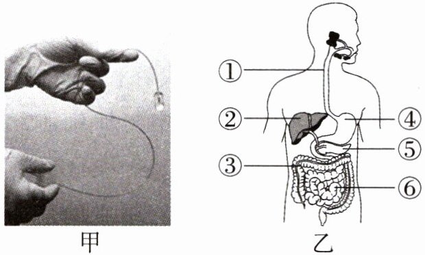7. 肠道显微胶囊是一种用于诊断胃肠道疾病的可吞咽式小型设备(如甲图),它可以短时间捕捉到消化道内的三维图像;图乙是人体消化系统的组成示意图。下列叙述正确的是(
