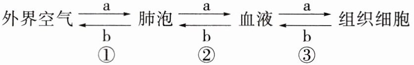 B.②过程中,$[a]$二氧化碳通过扩散作用进入血液