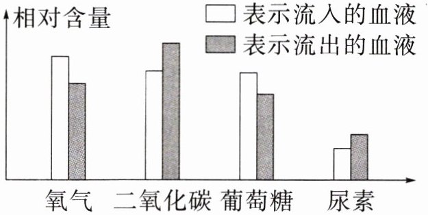 8. 下图所示的是进入和离开身体某器官的血液内四种物质的相对含量,该器官是(