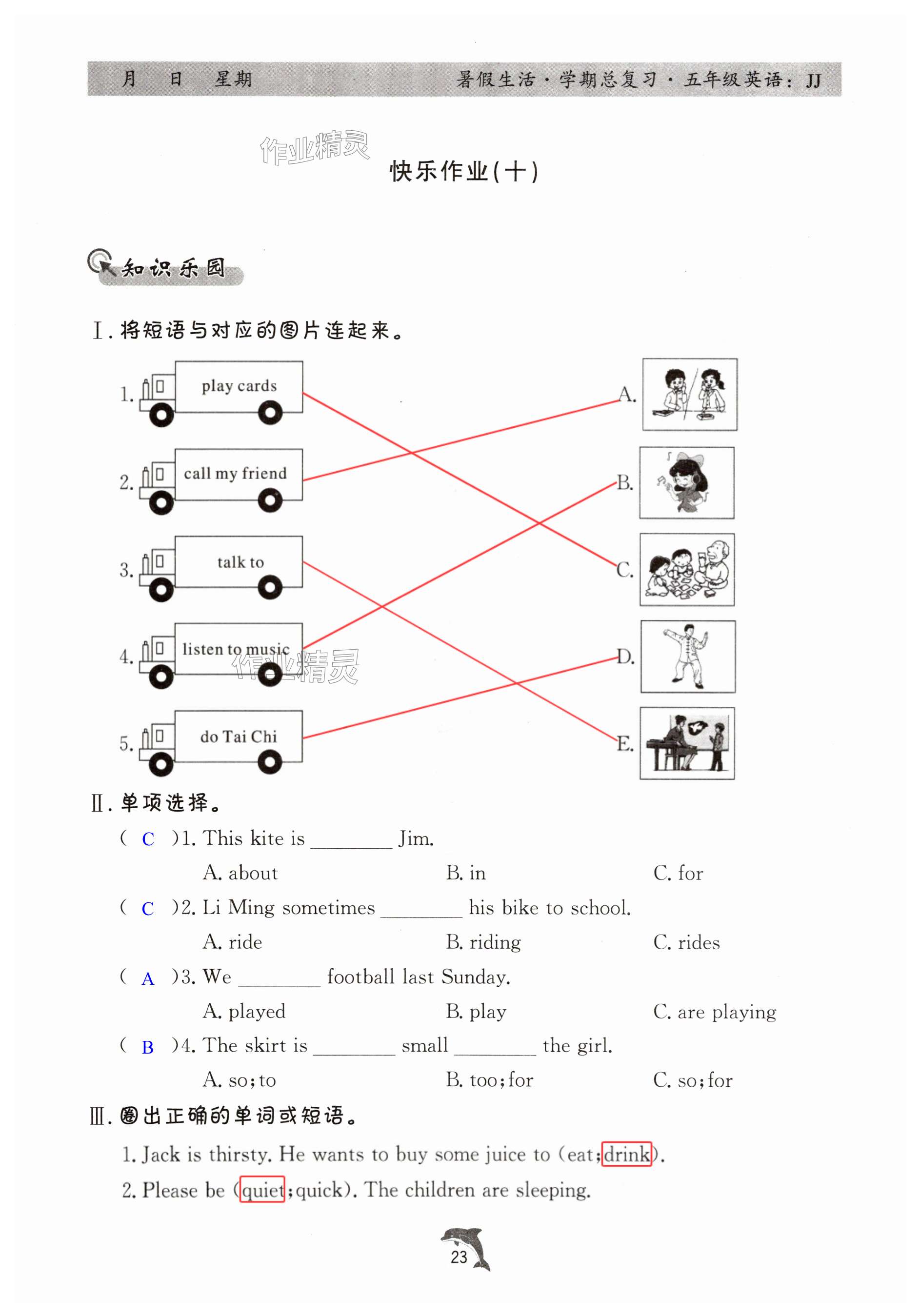 注:目前有些书本章节名称可能整理的还不是很完善,但都是按照顺序排列的,请同学们按照顺序仔细查找。练习册 2025年暑假生活学期总复习五年级英语冀教版 答案主要是用来给同学们做完题方便对答案用的,请勿直接抄袭。