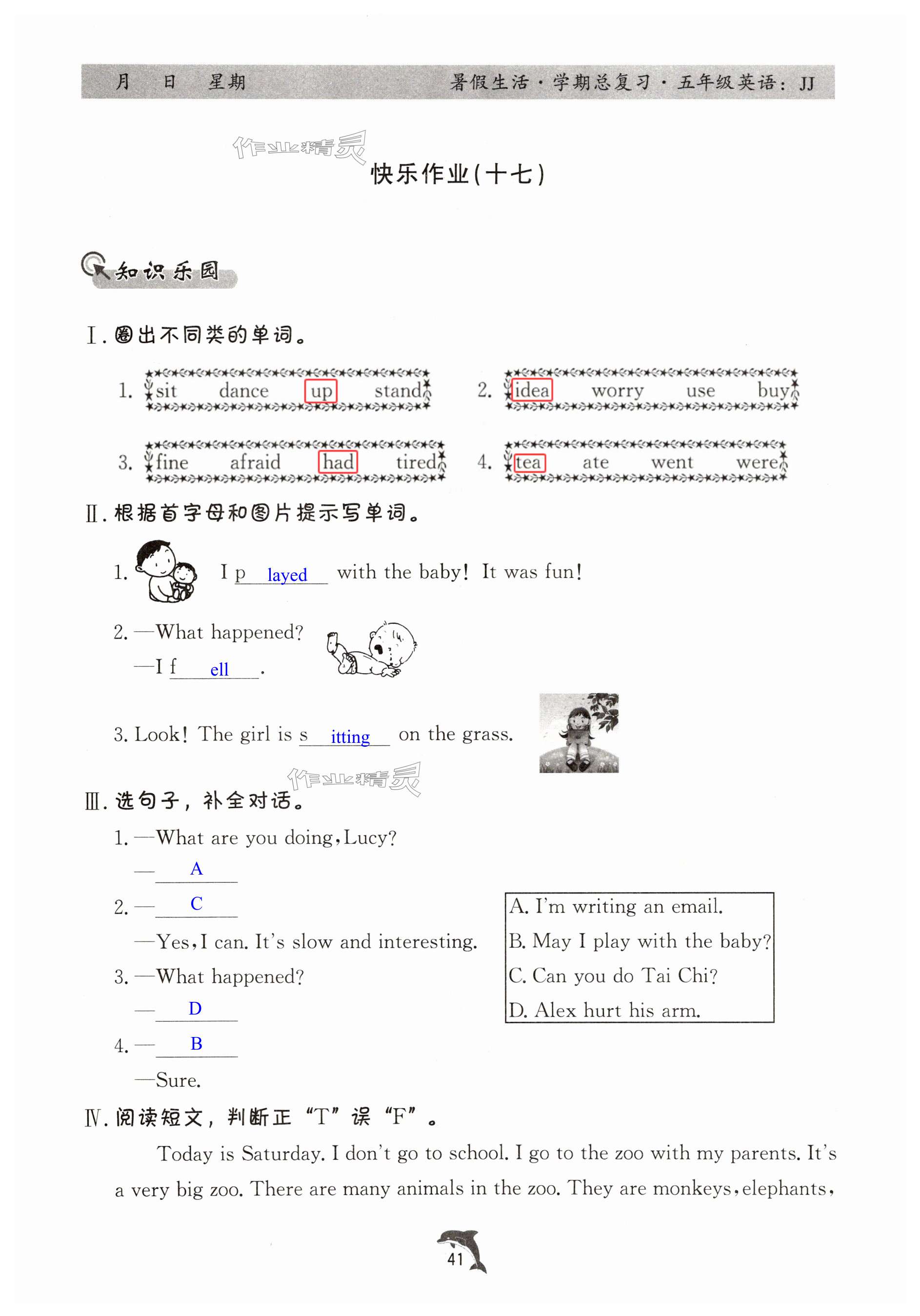 注:目前有些书本章节名称可能整理的还不是很完善,但都是按照顺序排列的,请同学们按照顺序仔细查找。练习册 2025年暑假生活学期总复习五年级英语冀教版 答案主要是用来给同学们做完题方便对答案用的,请勿直接抄袭。