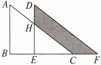 13. 如图,将直角三角形ABC沿直线BC向右平移后,到达三角形DEF的位置.若$ AB = 8cm $,$ BE = 4cm $,$ DH = 3cm $,求图中阴影部分的面积.