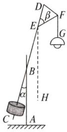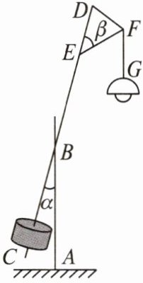 一种路灯的示意图如图所示,其底部支架AB与吊线FG平行,灯杆CD与底部支架AB所成锐角$α=15^{\circ }$. 顶部支架EF与灯杆CD所成锐角$β=45^{\circ }$,则EF与FG所成锐角的度数为( ).