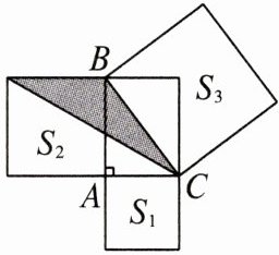 3. 如图,已知$Rt\triangle ABC$,分别以这个三角形的三边为边长向外侧作正方形,面积分别记为$S_{1}$,$S_{2}$,$S_{3}$。若$S_{3} + S_{2} - S_{1} = 18$,则图中阴影部分的面积为(