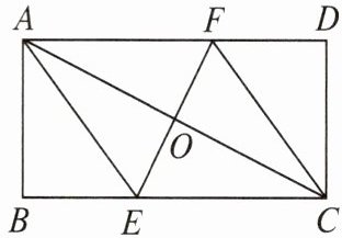 $\because OA = OC$,$\therefore$ 四边形 $AECF$ 为平行四边形。