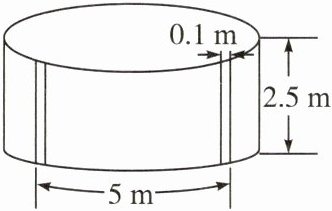 如图,马戏团的演出场地的外围围墙是用若干块长为 5 m,宽为 2.5 m 的长方形帆布缝制而成的,两块帆布缝合的公共部分是 0.1 m,围成的围墙高 2.5 m.有一次,这个马戏团被邀请到某市去演出,主办方为他们提供了一个半径为 10 m 的圆形场地,你知道马戏团需要买