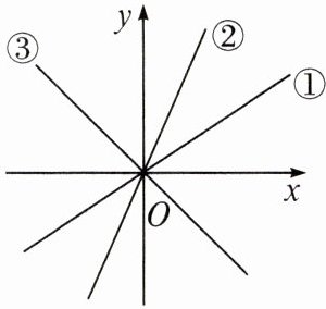 13. 如图,三个正比例函数的图象分别对应的解析式是① $ y = a x $,② $ y = b x $,③ $ y = c x $,则 a,b,c 的大小关系是(